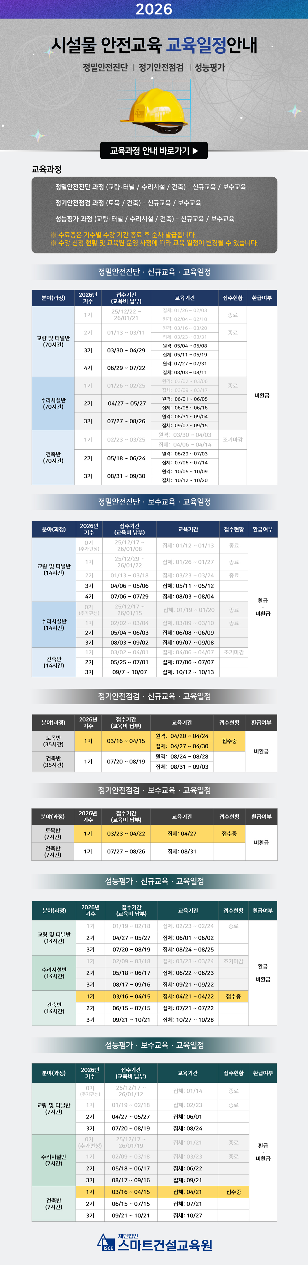 (교육일정) 2026년 시설물 안전교육[정밀안전진단 / 정기안전점검 / 성능평가]
