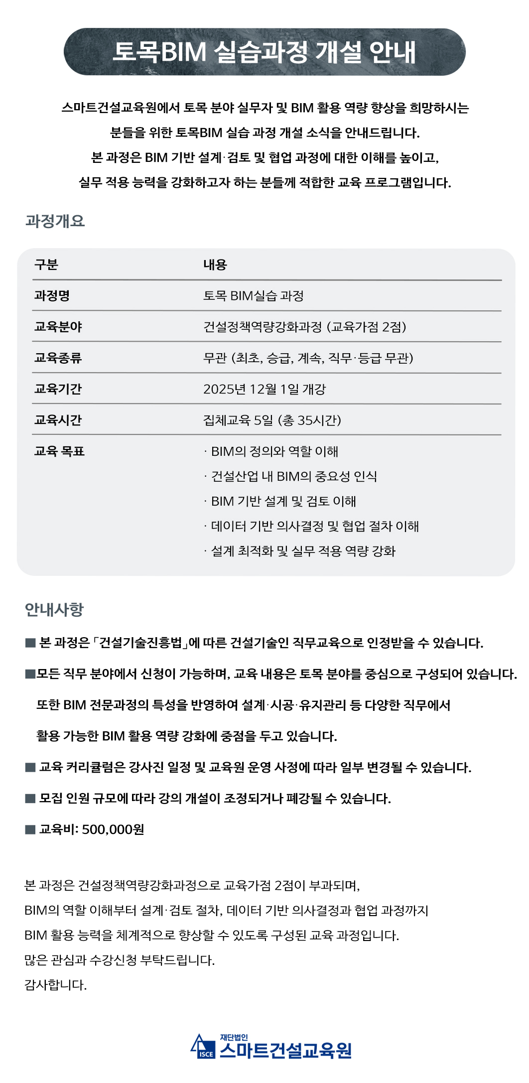 (신규 온라인교육과정개설 안내)토목BIM 실습과정
