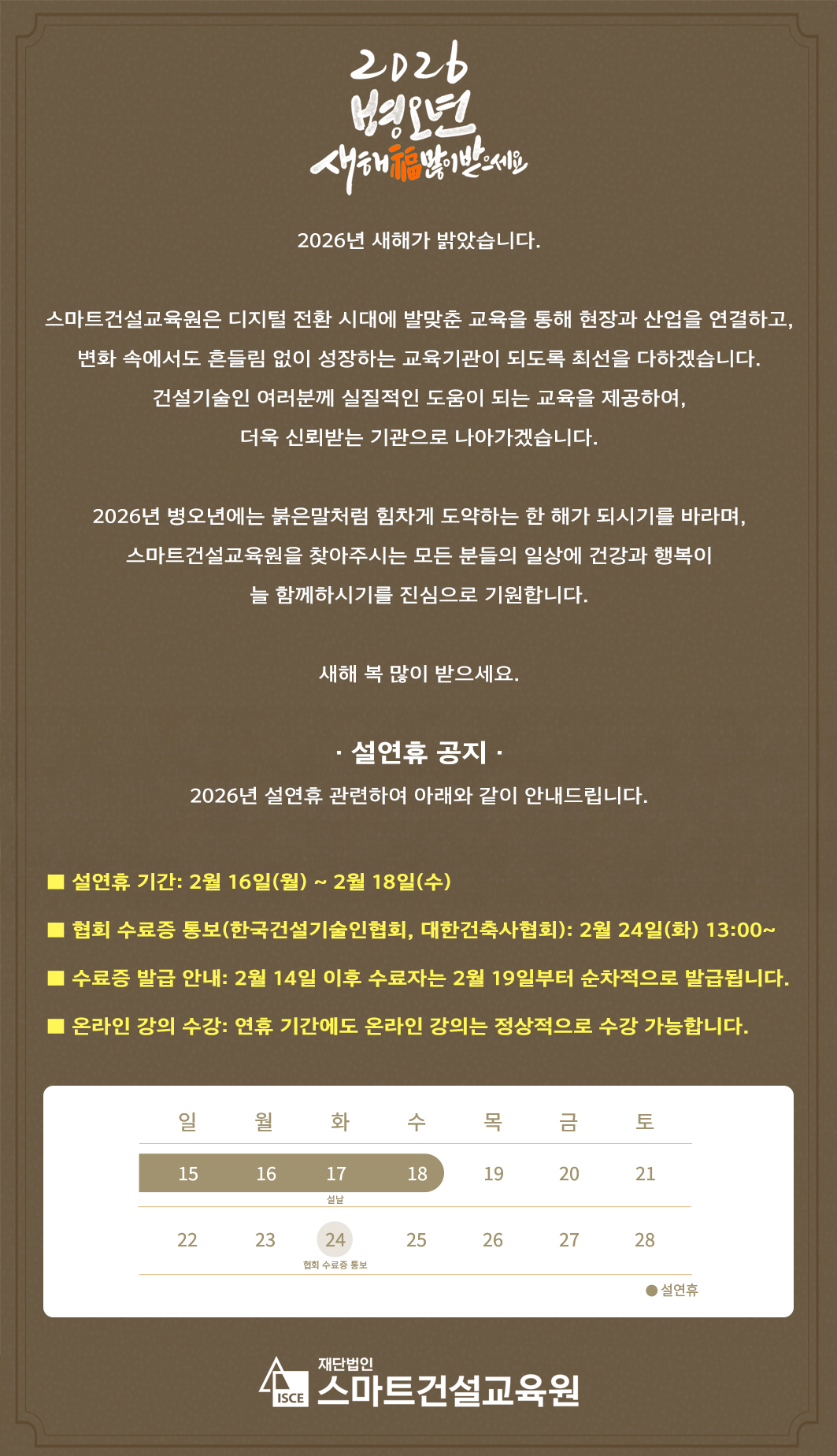 2026년 병오년, 힘찬 도약의 새해를 기원합니다 [설연휴 안내]