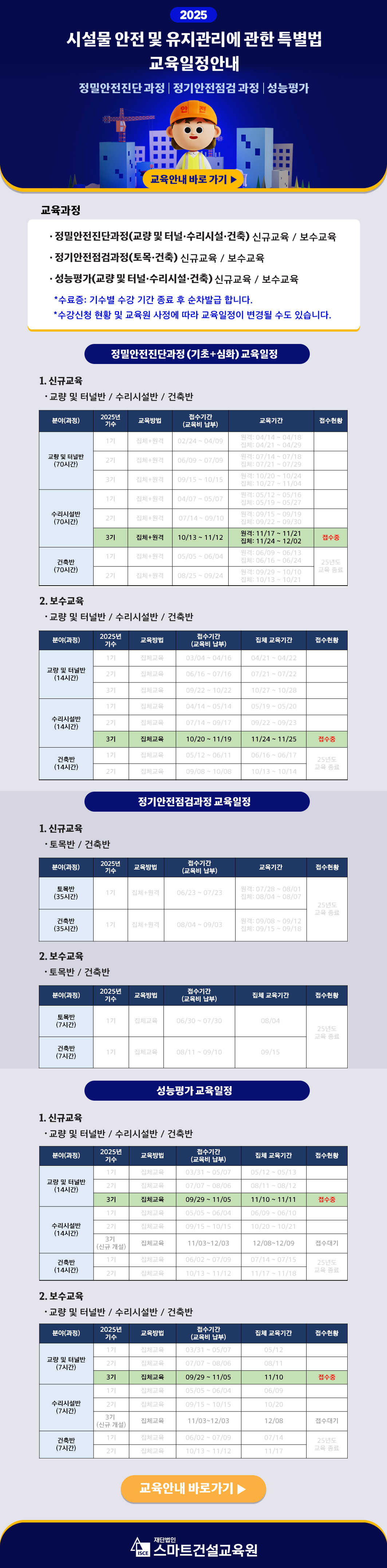 (교육일정) 2025년 시설물 안전교육[정밀안전진단 / 정기안전점검 / 성능평가]