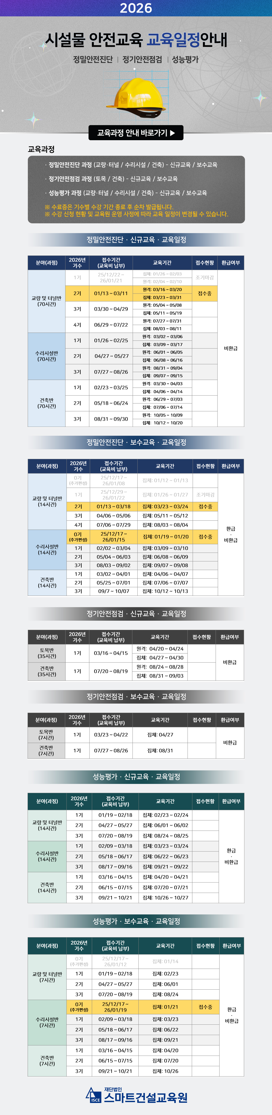 (교육일정) 2026년 시설물 안전교육[정밀안전진단 / 정기안전점검 / 성능평가]
